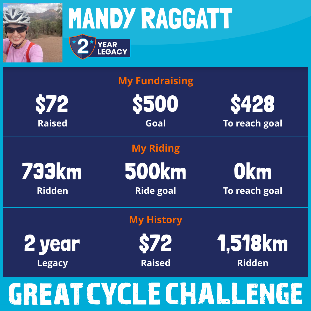 733 km Ridden$72 Raised2026