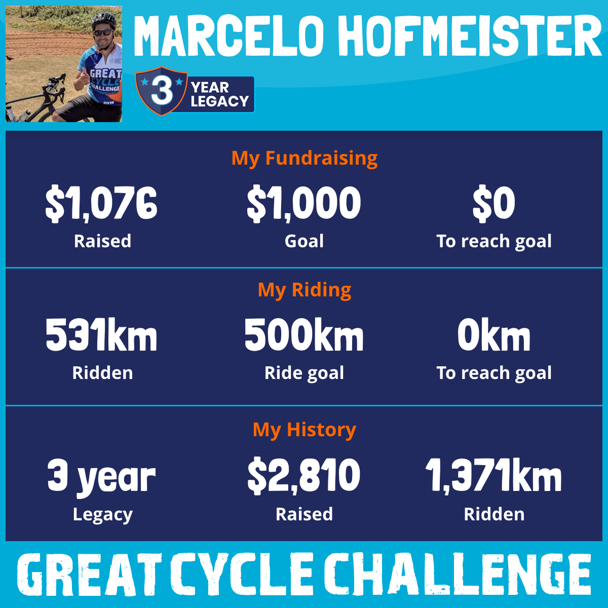 531 km Ridden$1,076 Raised2026