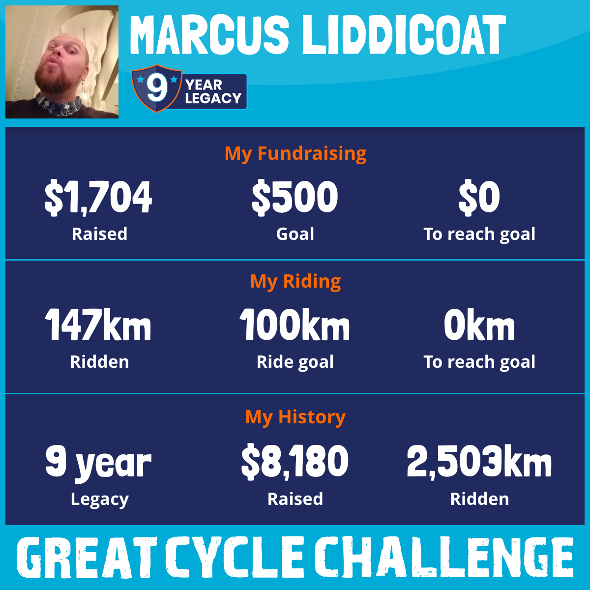 147 km Ridden$1,704 Raised2026