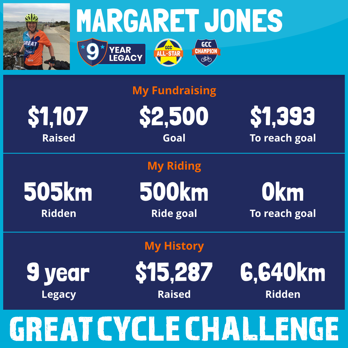 505 km Ridden$1,107 Raised2026