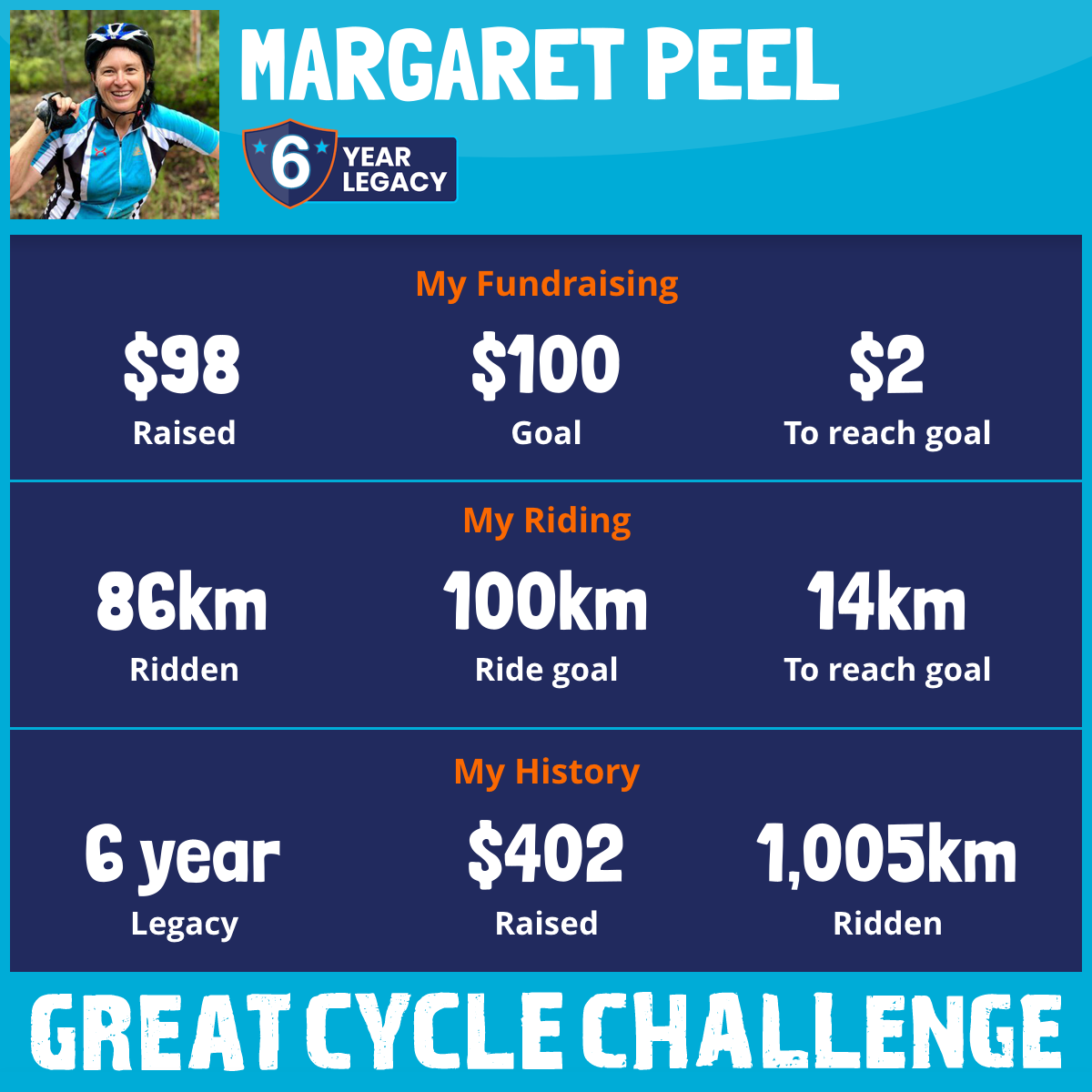 86 km Ridden$98 Raised2026