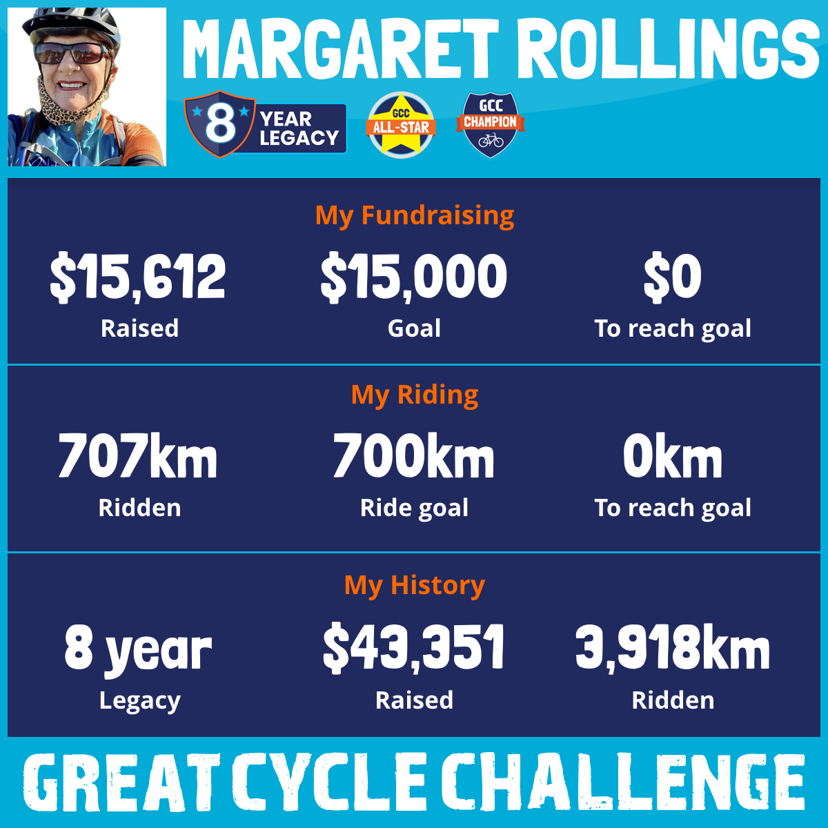 For this reason, I have decided (for the EIGHTH time), to participate in the Great Cycle Challenge to kick cancer's butt!! AND RIDE MY BUTT OFF!!!