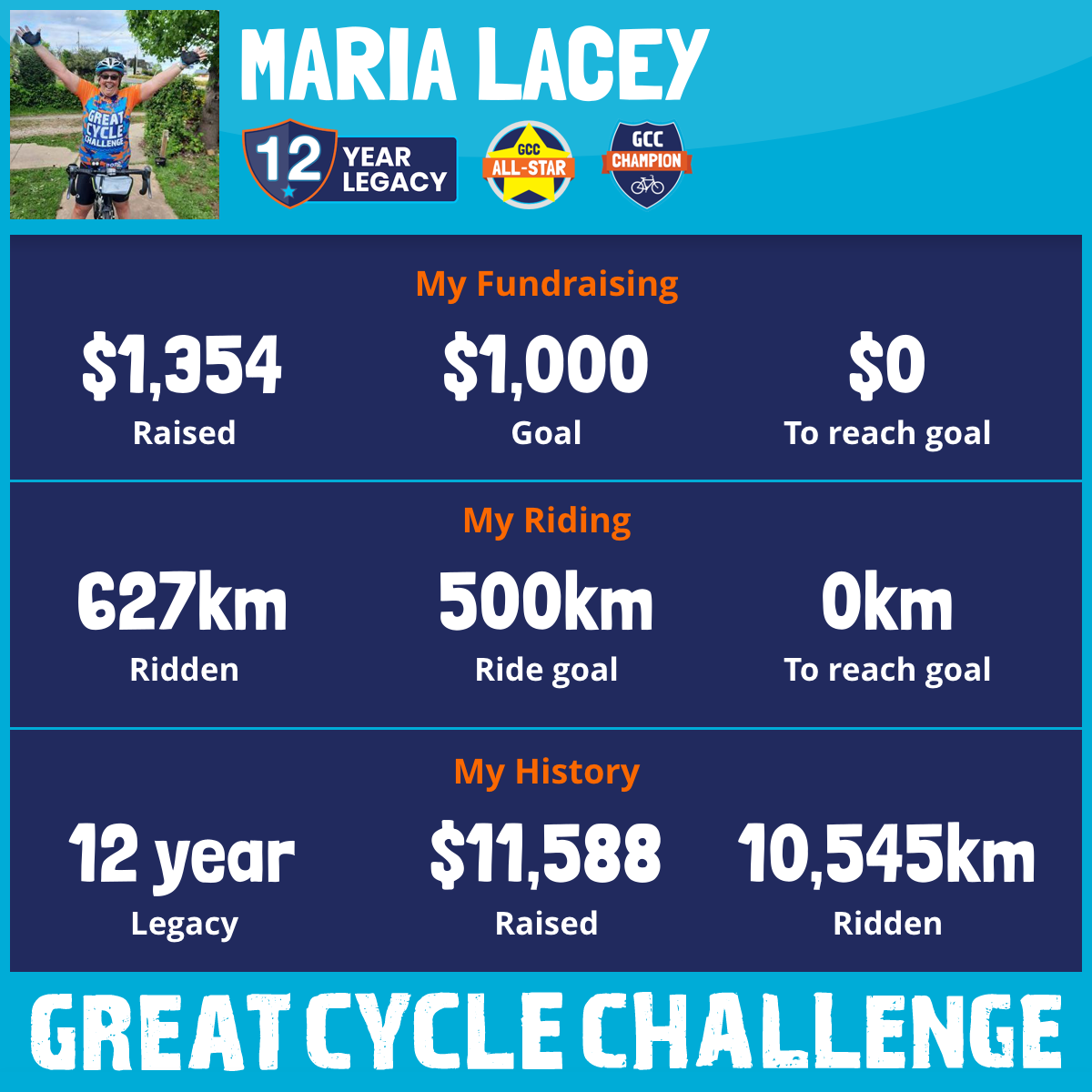 627 km Ridden$1,354 Raised2025