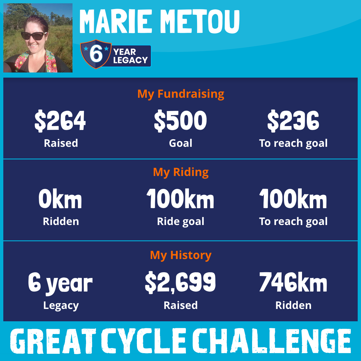 And so I am riding and raising funds to support the Children's Medical Research Institute to continue their work into the prevention, diagnosis, treatment and finding a cure for childhood cancer.