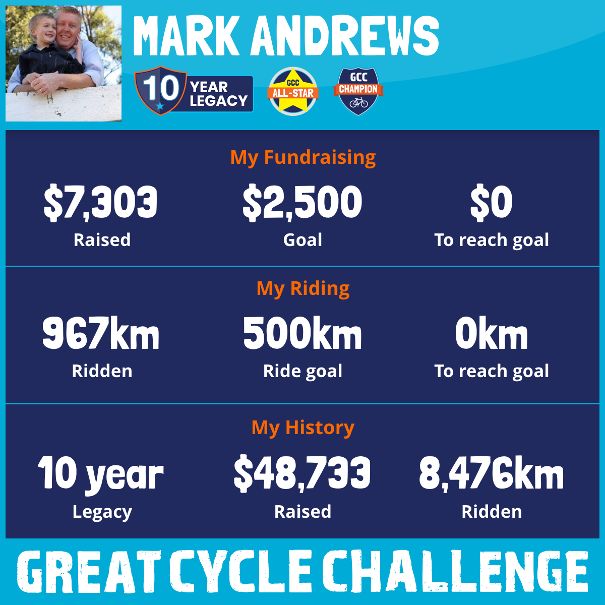 And so I am riding and raising funds to support the Children's Medical Research Institute to continue their work into the prevention, diagnosis, treatment and finding a cure for childhood cancer.