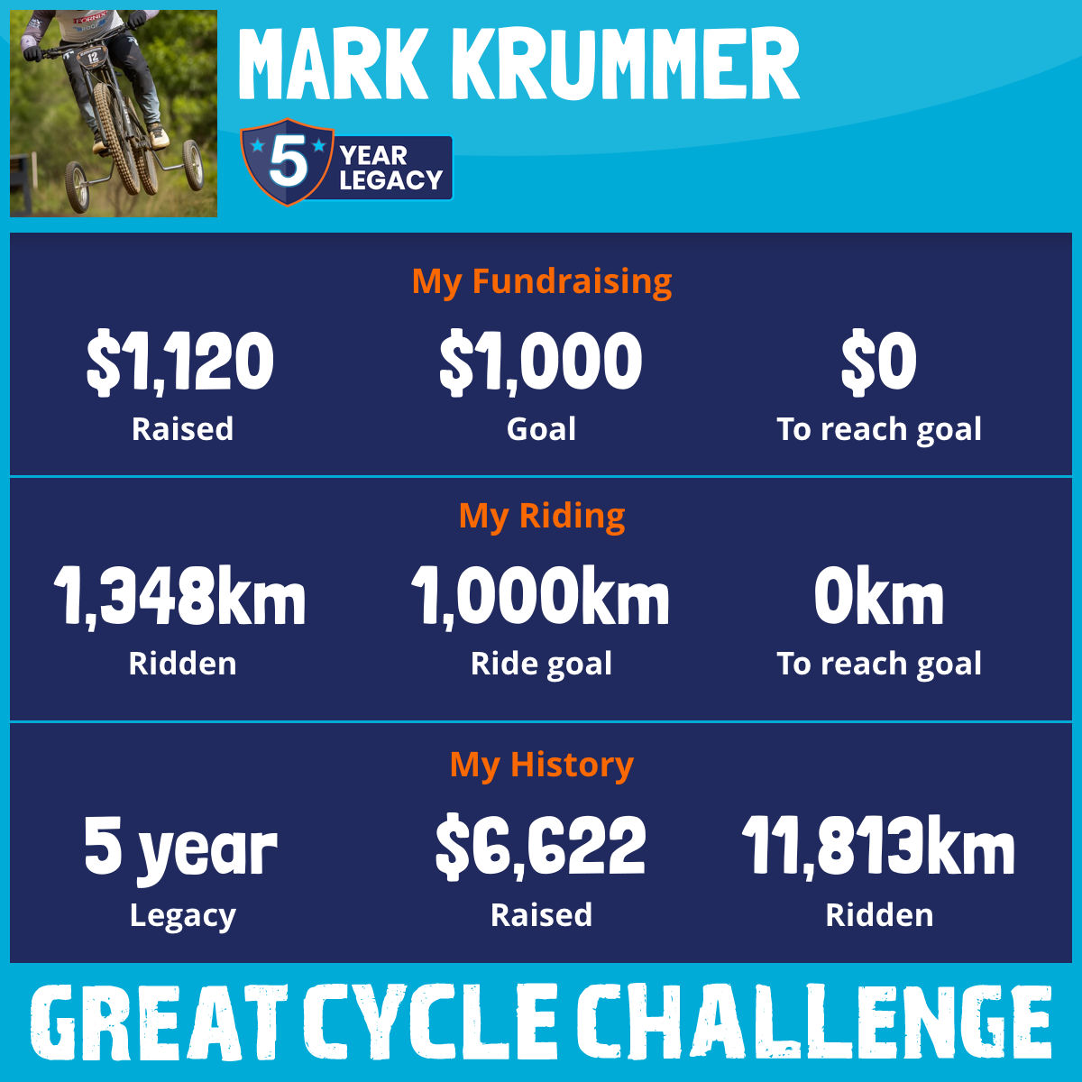 1,348 km Ridden$1,120 Raised2026