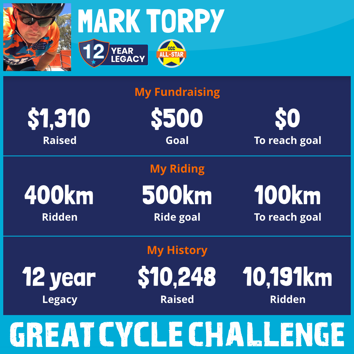 400 km Ridden$1,310 Raised2026