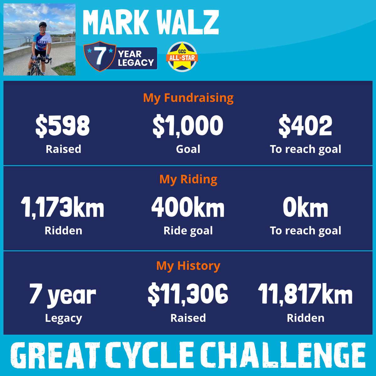 1,173 km Ridden$598 Raised2026