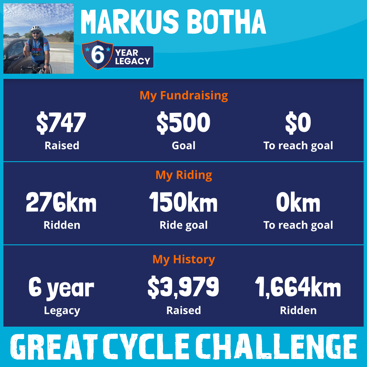 276 km Ridden$747 Raised2025