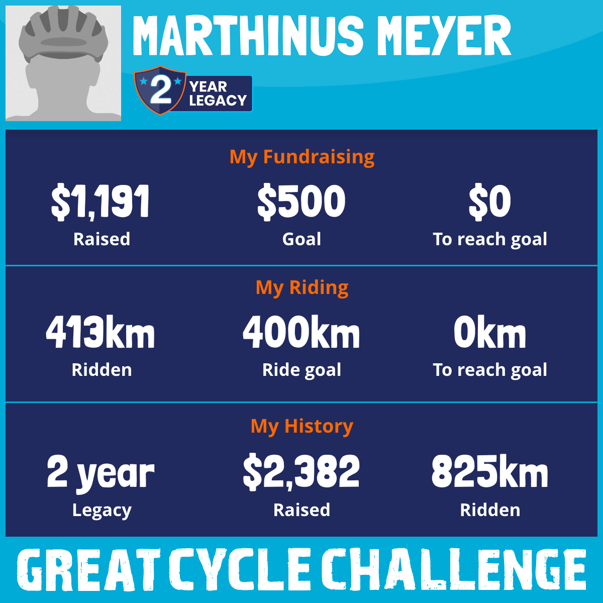 And so I am riding and raising funds to support the Children's Medical Research Institute to continue their work into the prevention, diagnosis, treatment and finding a cure for childhood cancer.