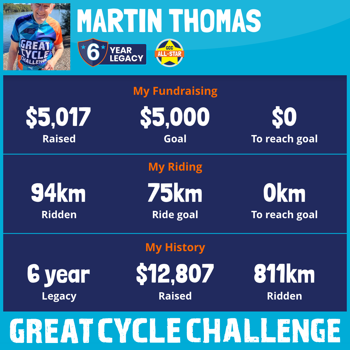 And so I am riding and raising funds to support the Children's Medical Research Institute to continue their work into the prevention, diagnosis, treatment and finding a cure for childhood cancer.