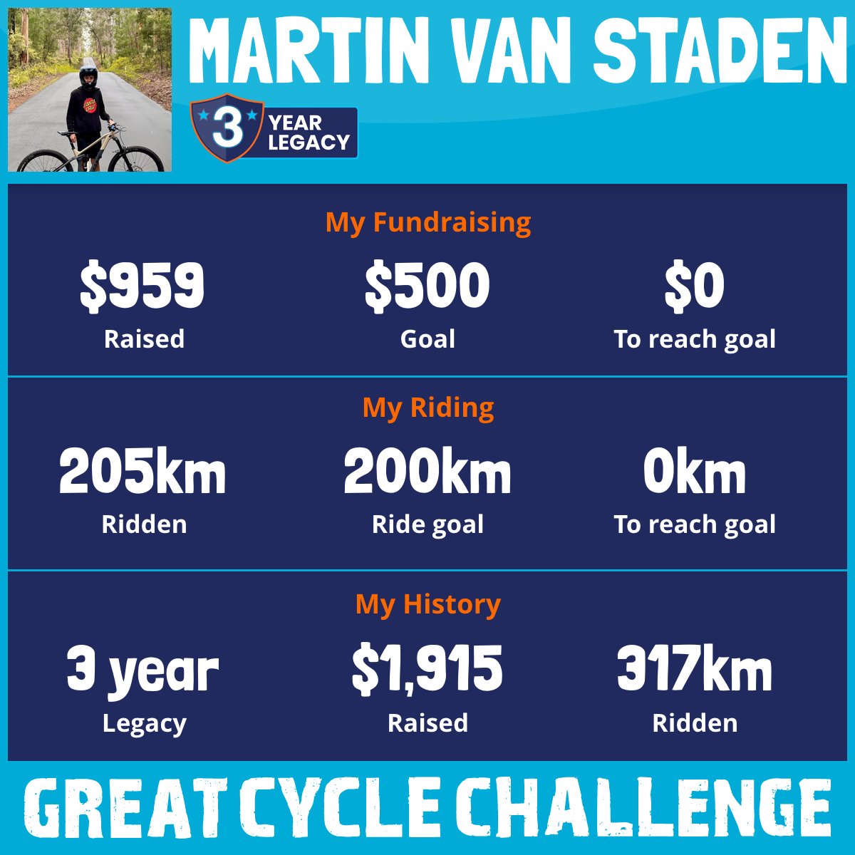 205 km Ridden$959 Raised2025