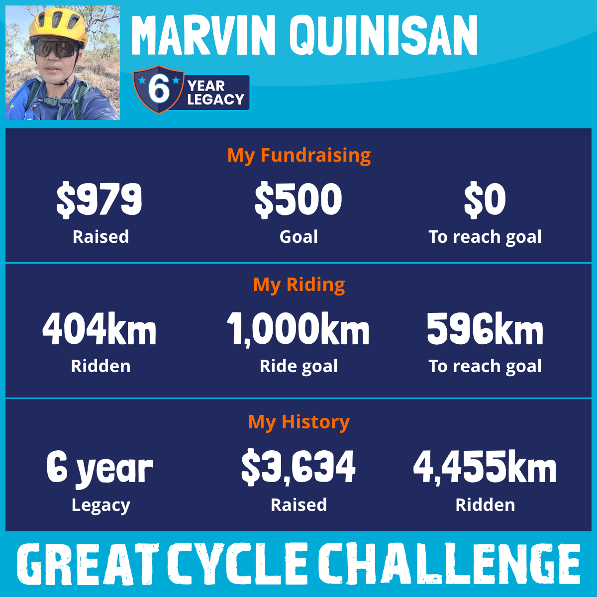 404 km Ridden$979 Raised2026