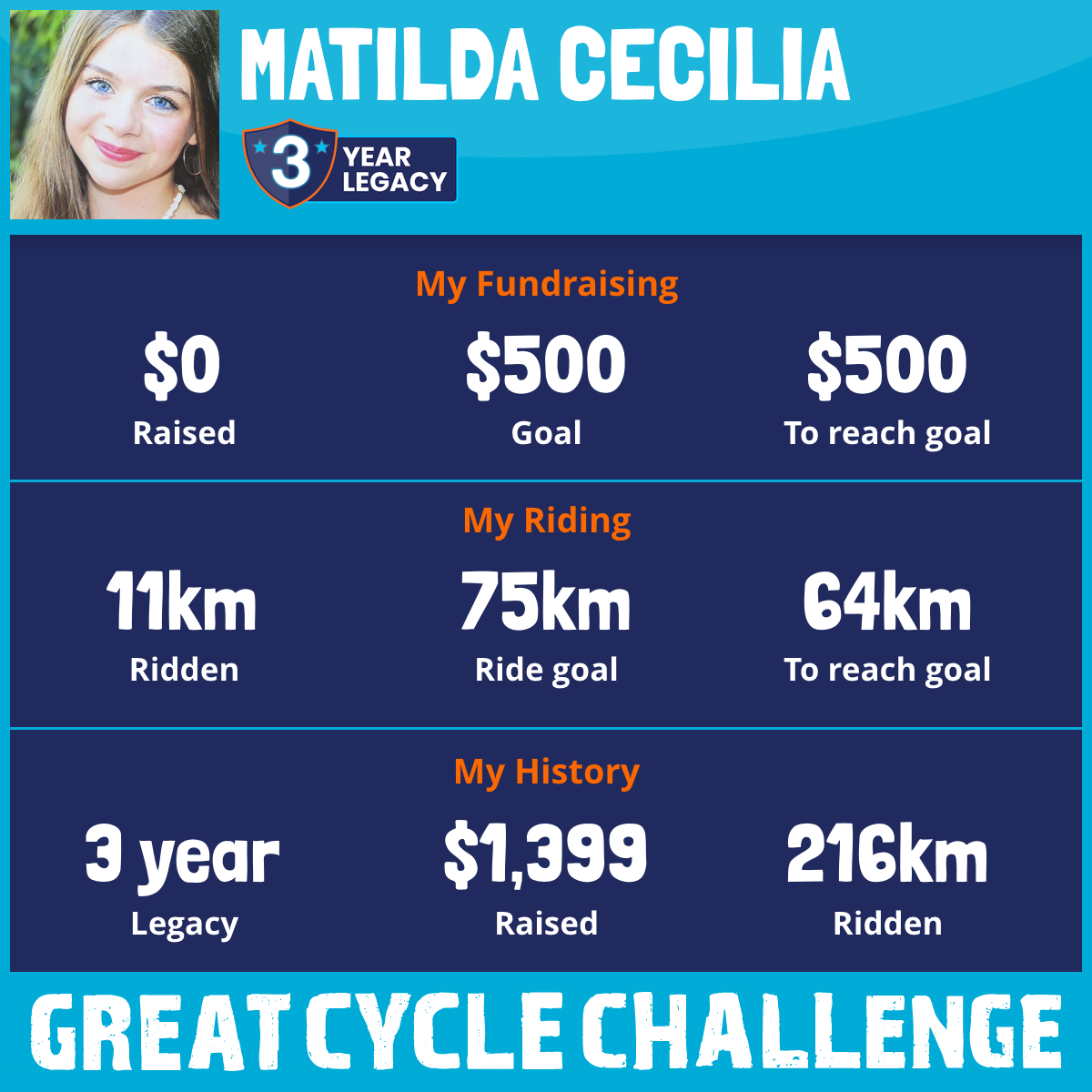 Cancer is horrible, and takes so many kids so early that’s why This October, I am taking part in the Great Cycle Challenge to fight kids' cancer!