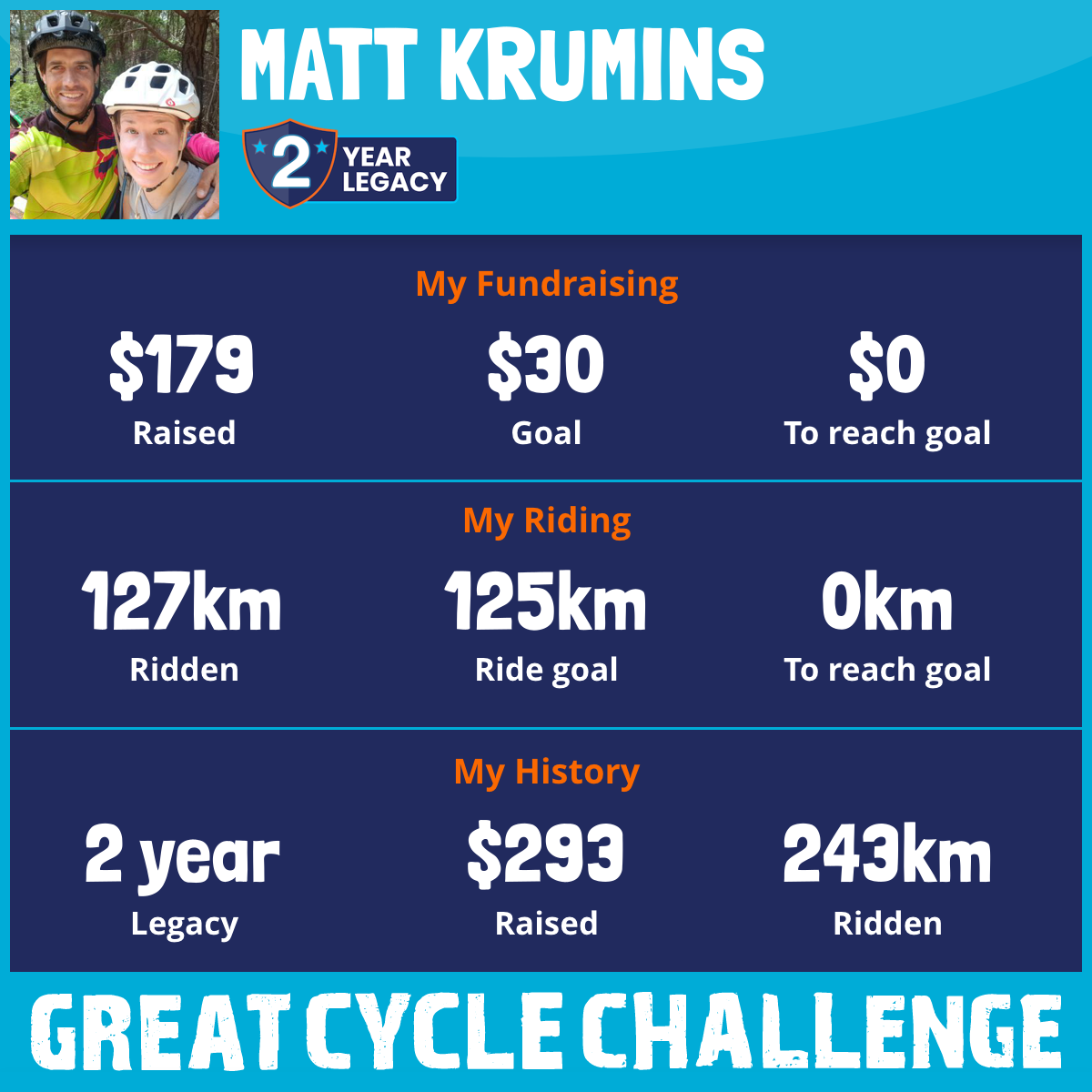 127 km Ridden$179 Raised2026