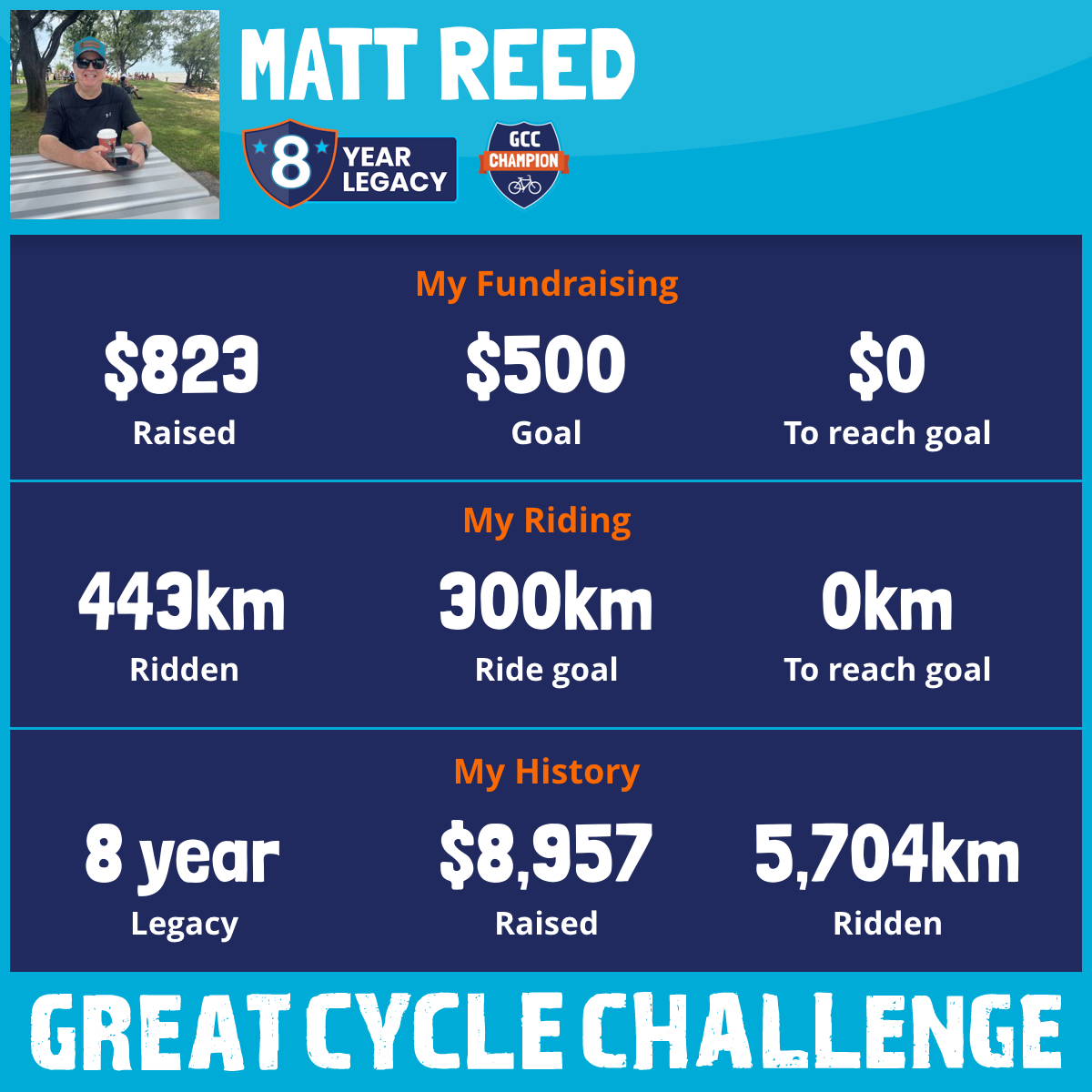 443 km Ridden$823 Raised2026