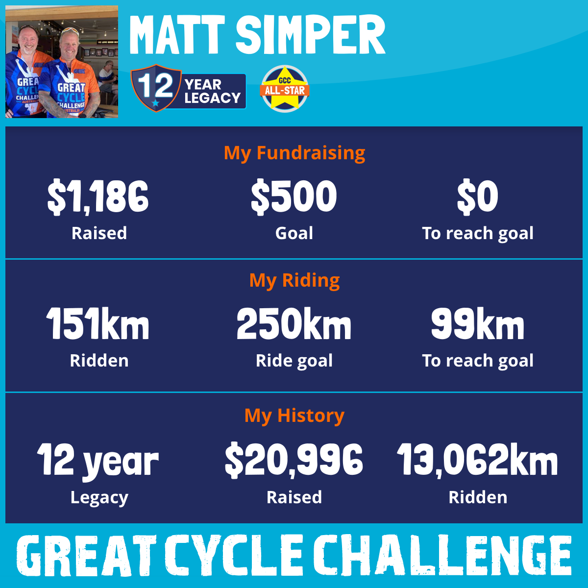 And so I am riding and raising funds to support the Children's Medical Research Institute to continue their work into the prevention, diagnosis, treatment and finding a cure for childhood cancer.