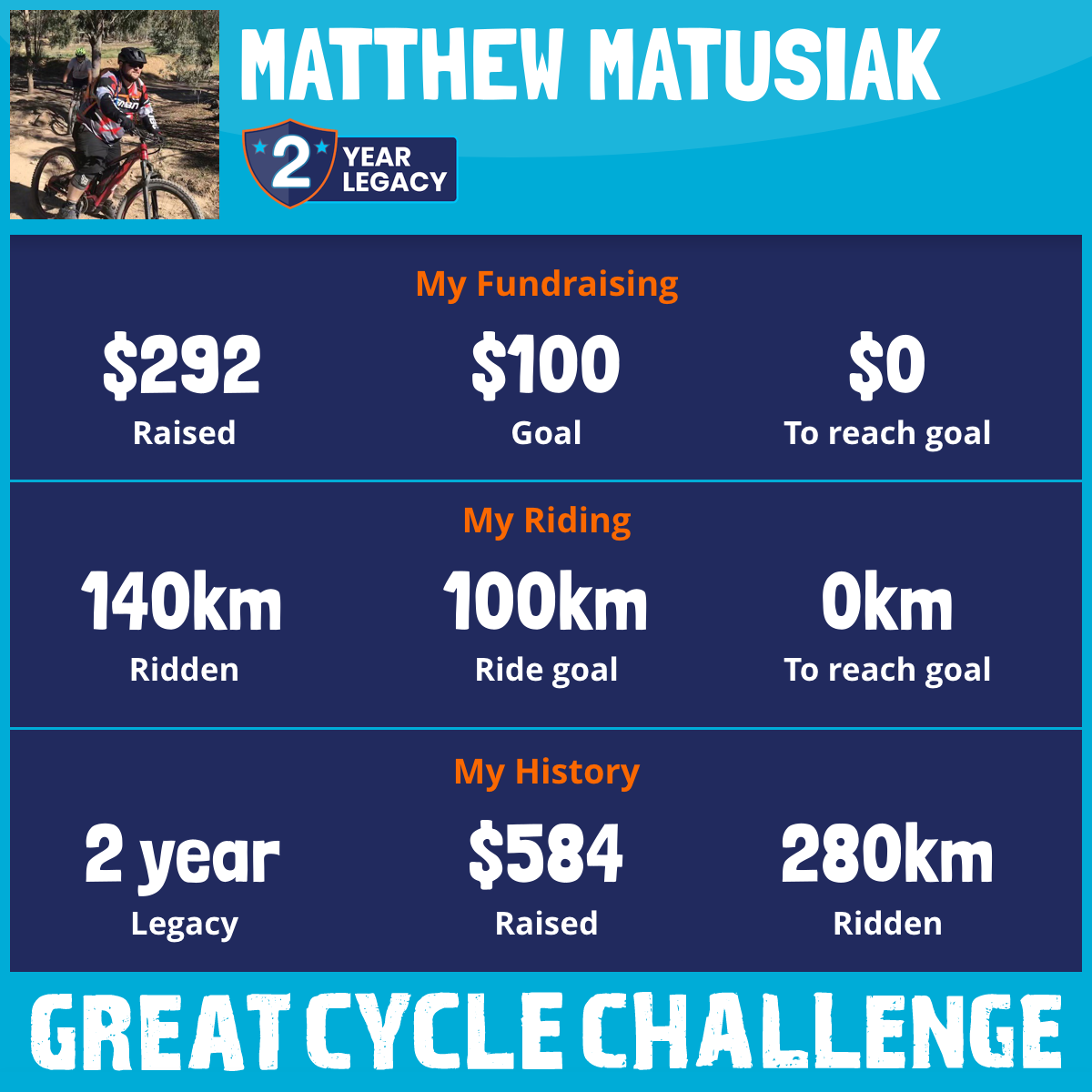 140 km Ridden$292 Raised2026