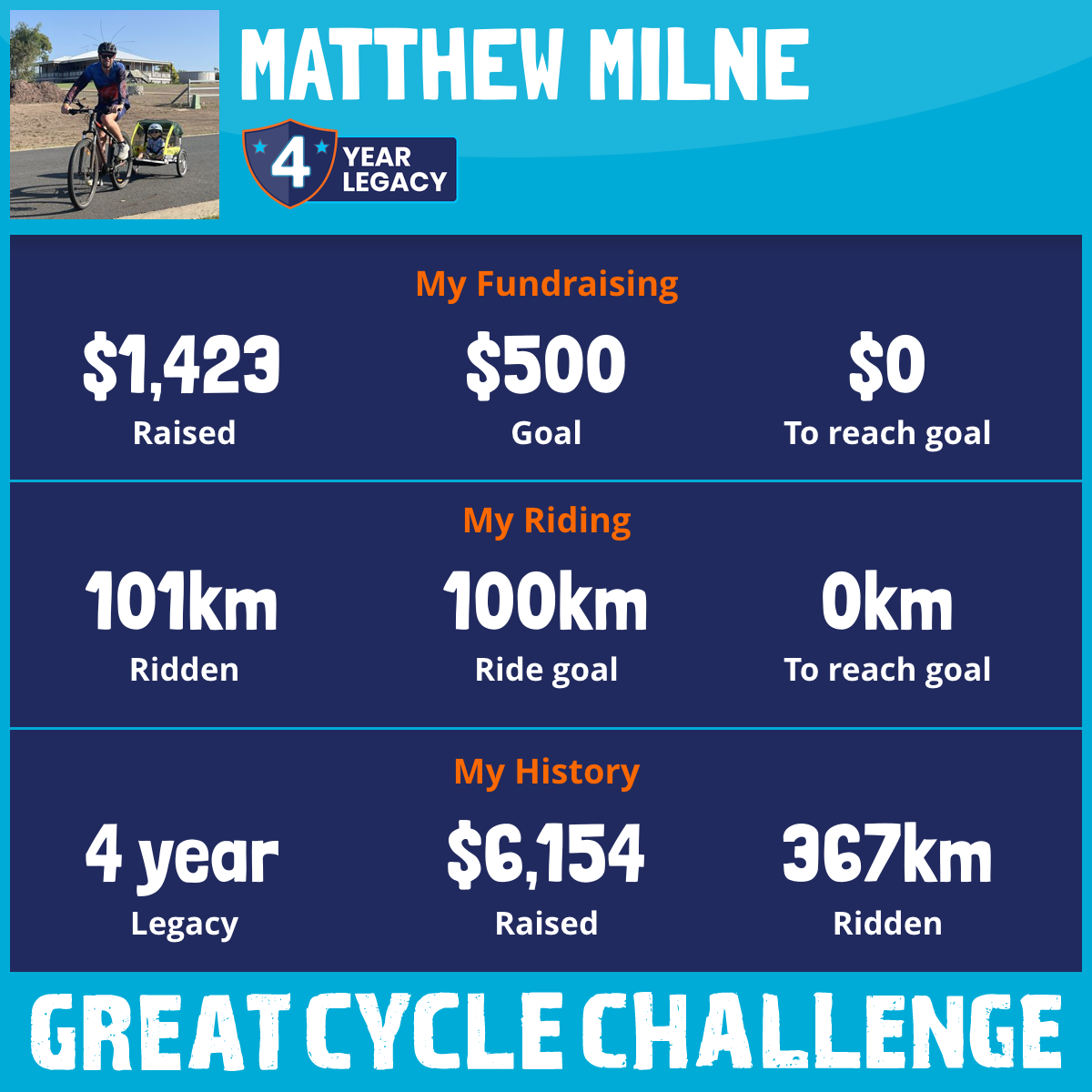 101 km Ridden$1,423 Raised2026