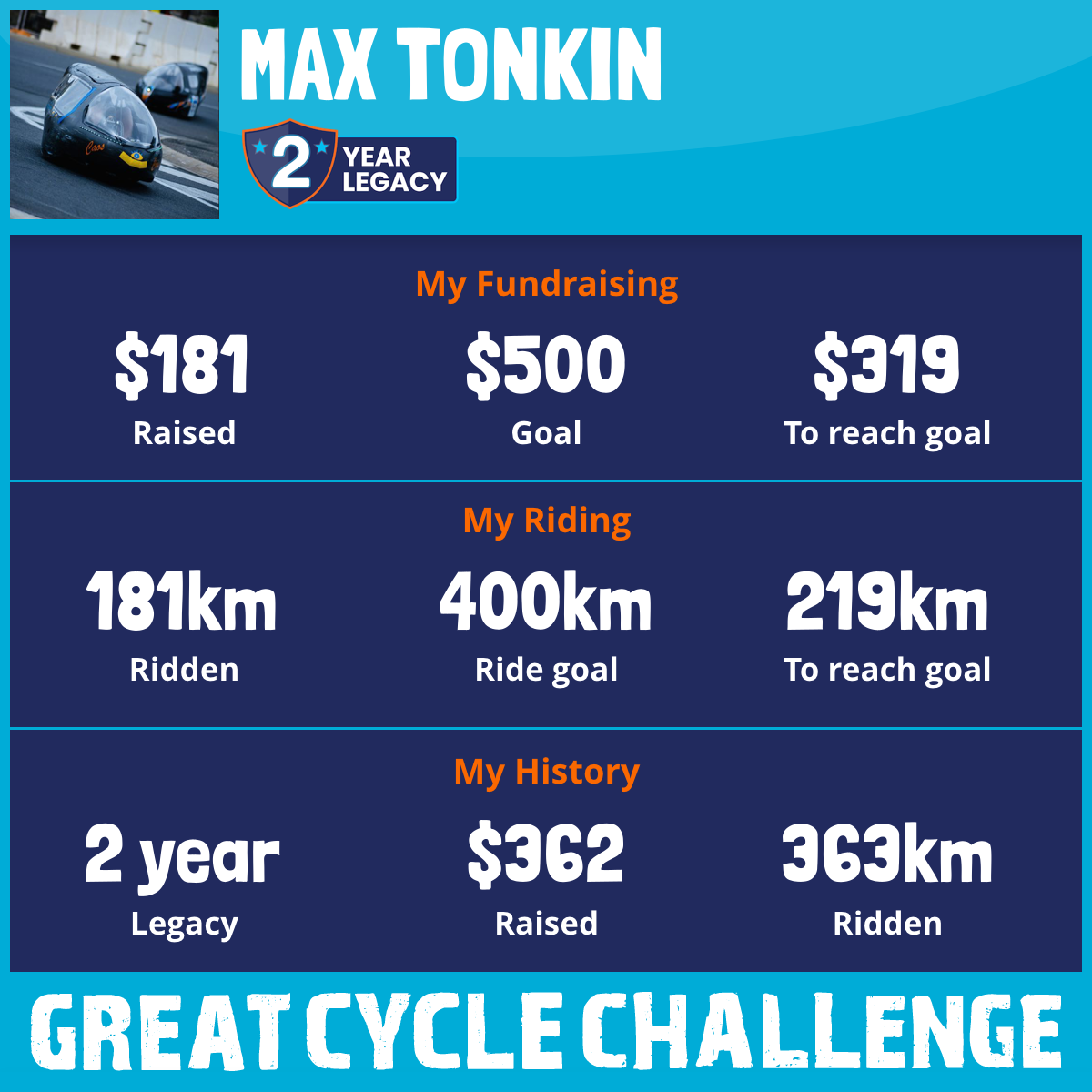 181 km Ridden$181 Raised2026