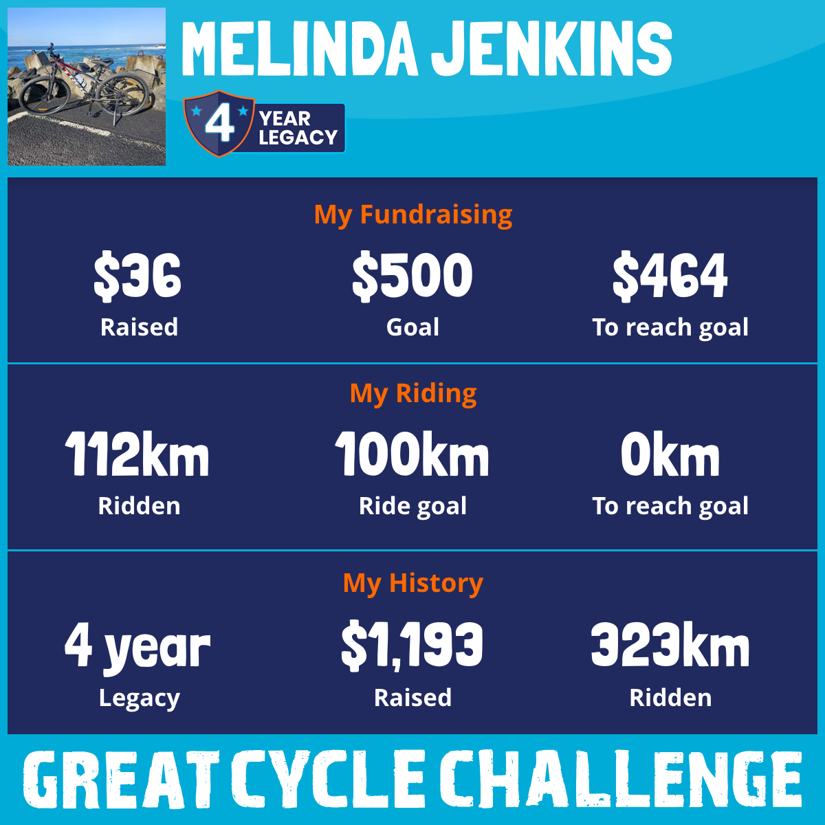 127 km Ridden$605 Raised2023