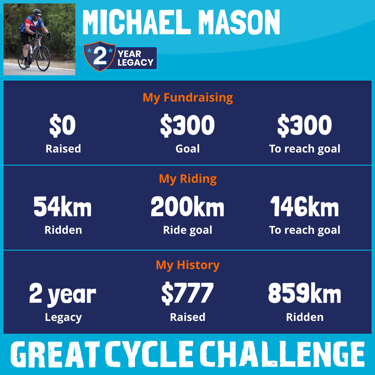 And so I am riding and raising funds to support the Children's Medical Research Institute to continue their work into the prevention, diagnosis, treatment and finding a cure for childhood cancer.
