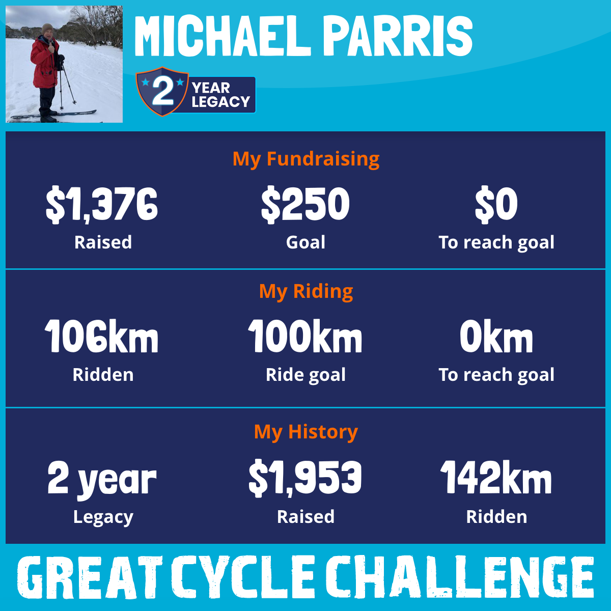 And so I am riding and raising funds to support the Children's Medical Research Institute to continue their work into the prevention, diagnosis, treatment and finding a cure for childhood cancer.