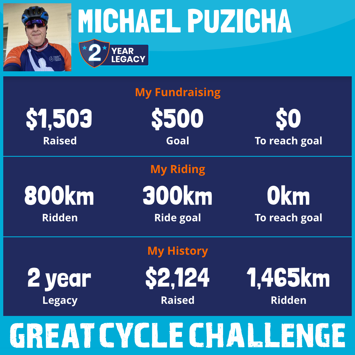 800 km Ridden$1,503 Raised2025