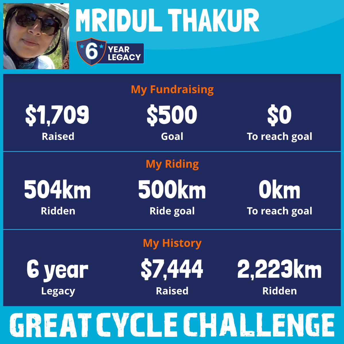 I am riding 1,000 km in memory of my mum, Smt Savitri Devi. Please sponsor me and support my challenge to fight kids' cancer and save little lives.