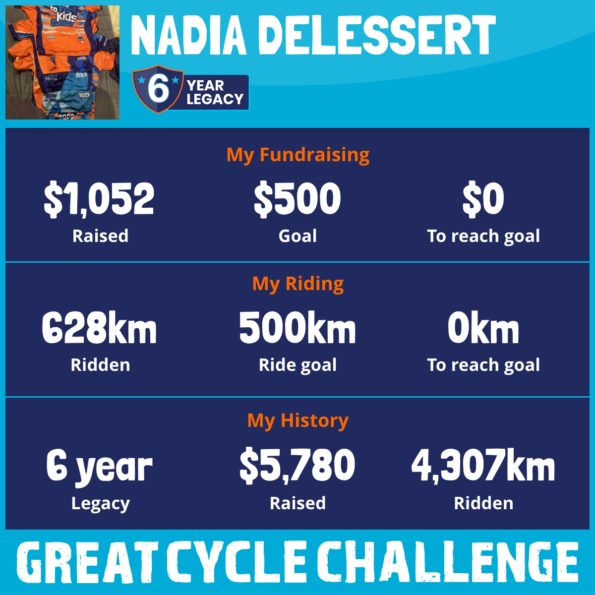 734 km Ridden$1,104 Raised2024