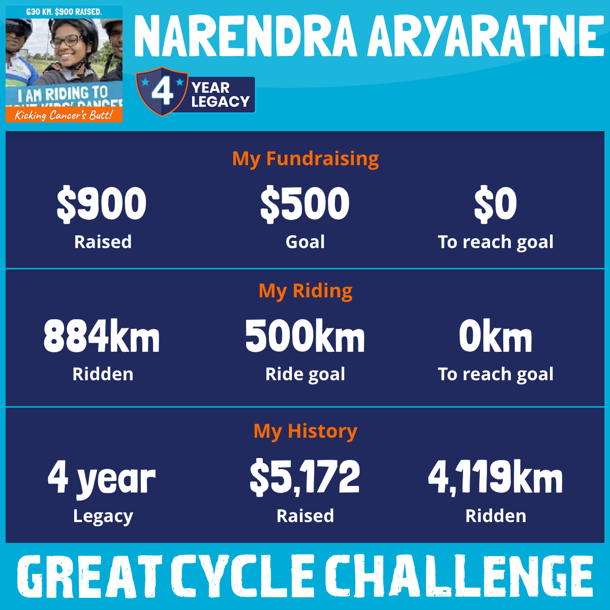 884 km Ridden$900 Raised2026