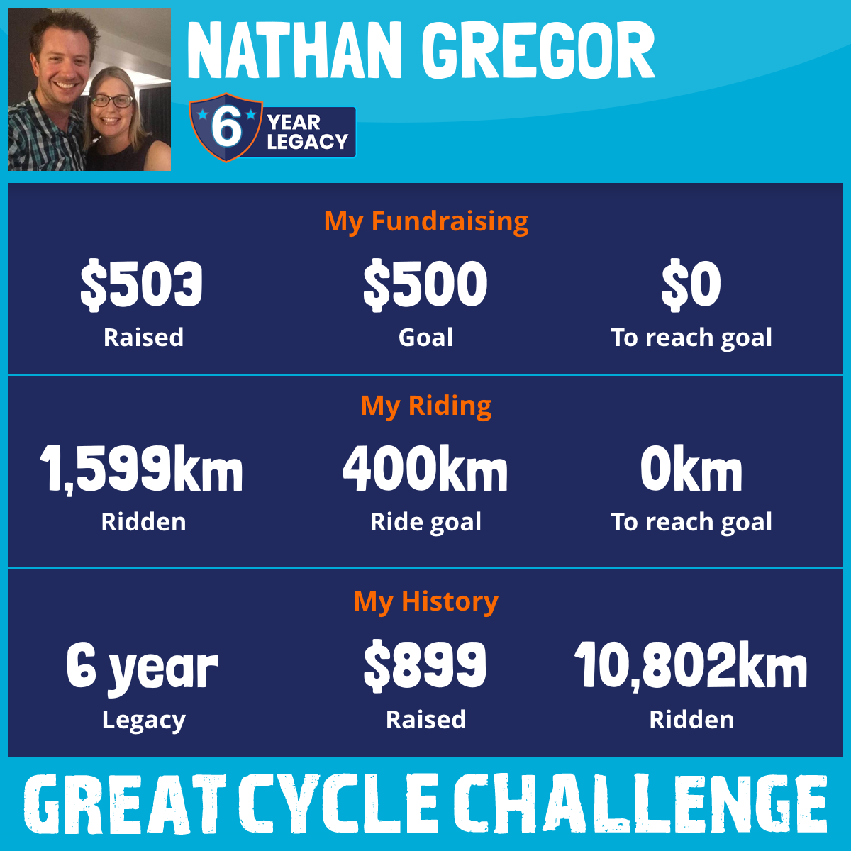 1,599 km Ridden$503 Raised2026