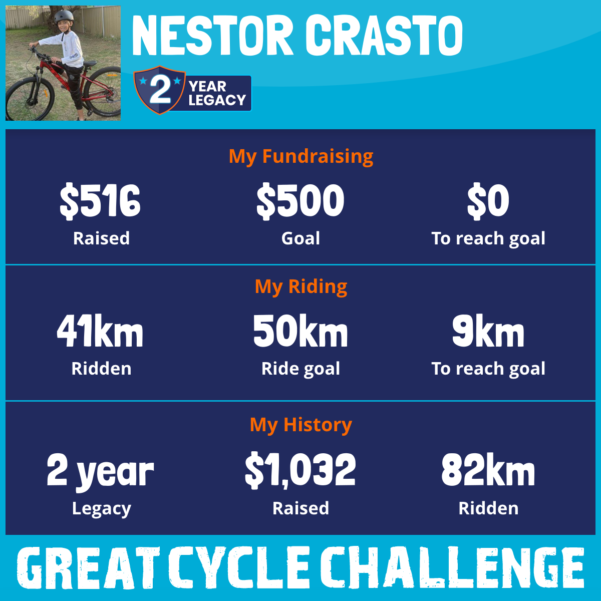 41 km Ridden$516 Raised2026