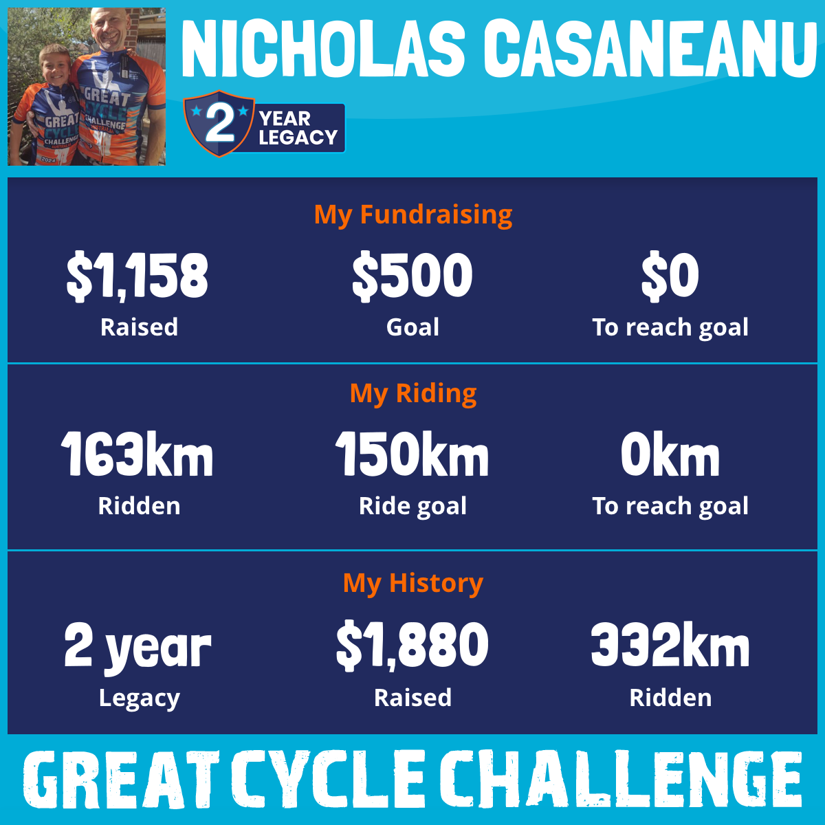 163 km Ridden$1,158 Raised2026