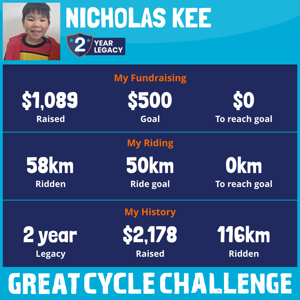 58 km Ridden$1,089 Raised2026