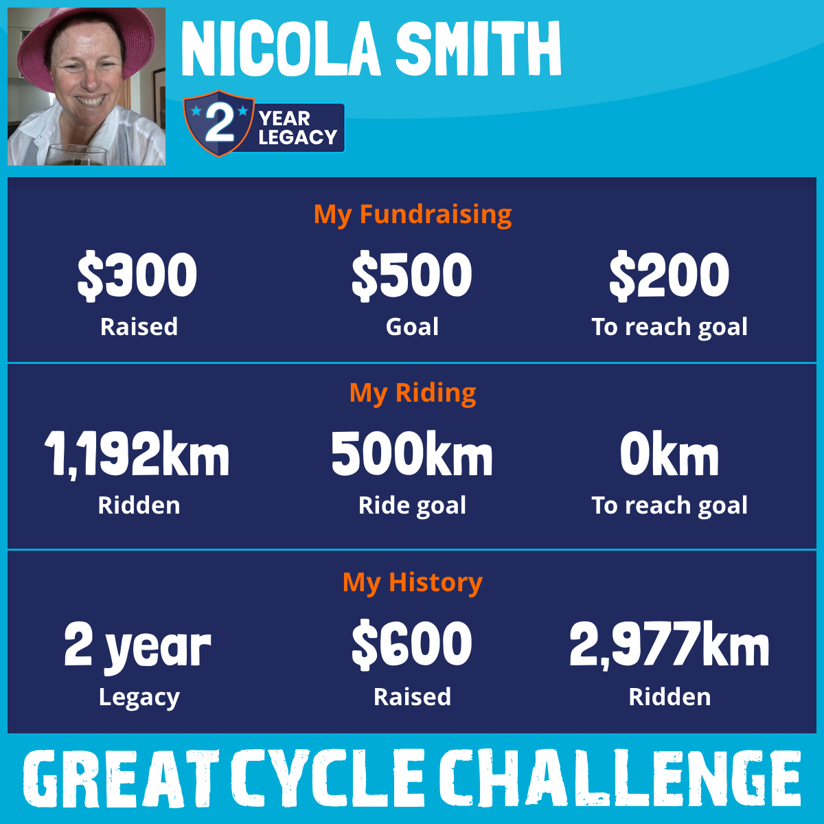 1,192 km Ridden$300 Raised2026