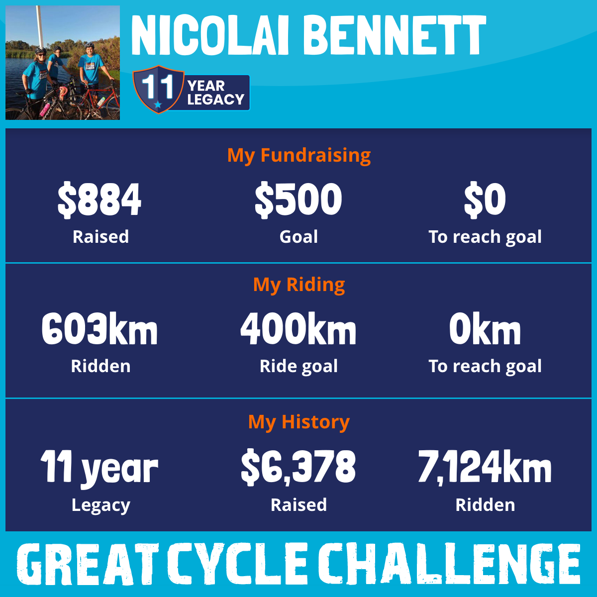603 km Ridden$884 Raised2026