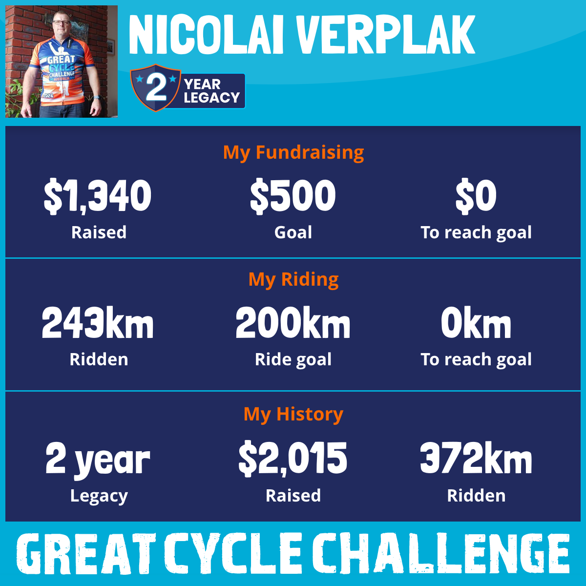 243 km Ridden$1,340 Raised2026