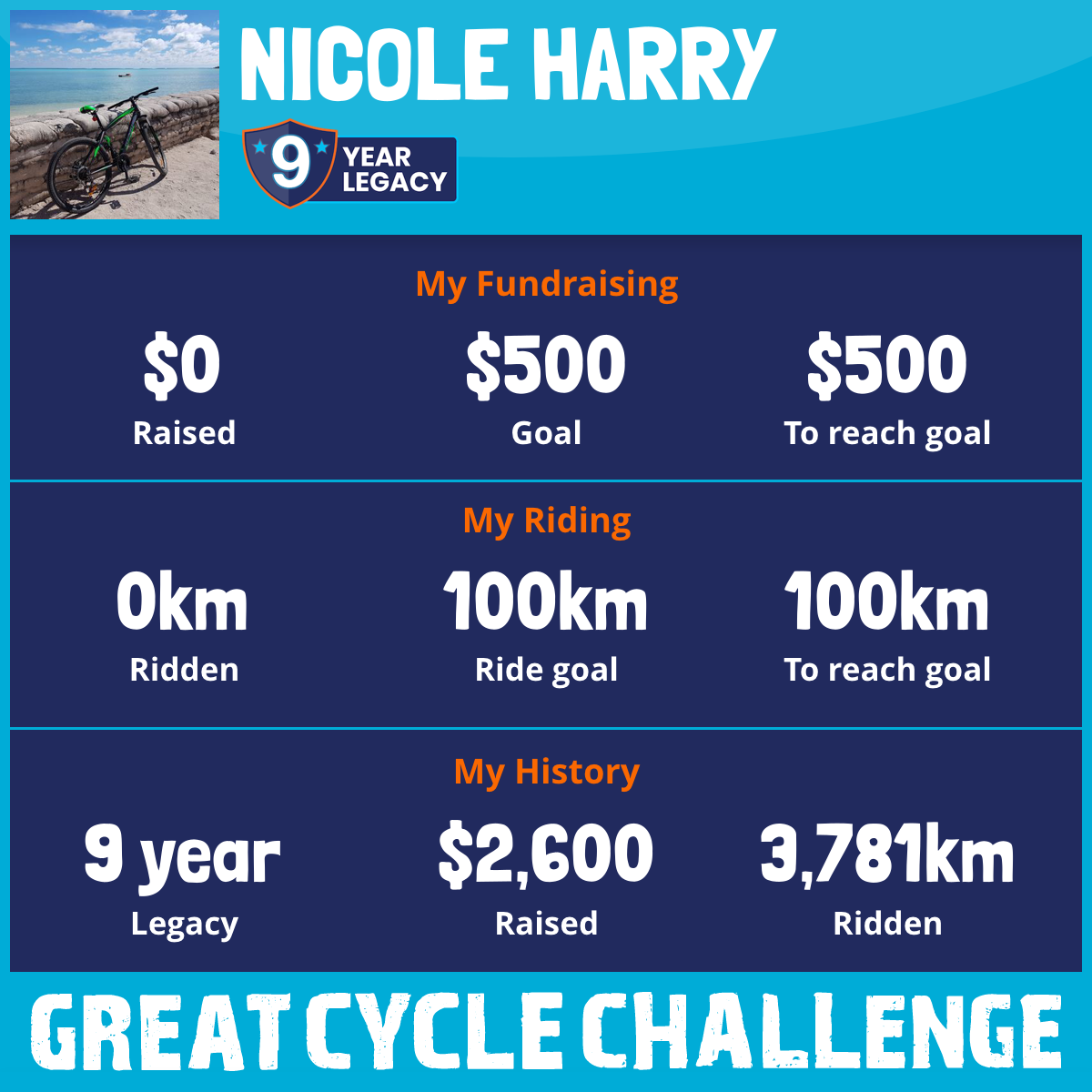 This October, I am taking part in the Great Cycle Challenge to raise fund for the Children's Medical Research Institute. I am riding and raising funds to support their work into the prevention, diagnosis, treatment and finding a cure for childhood cancer.