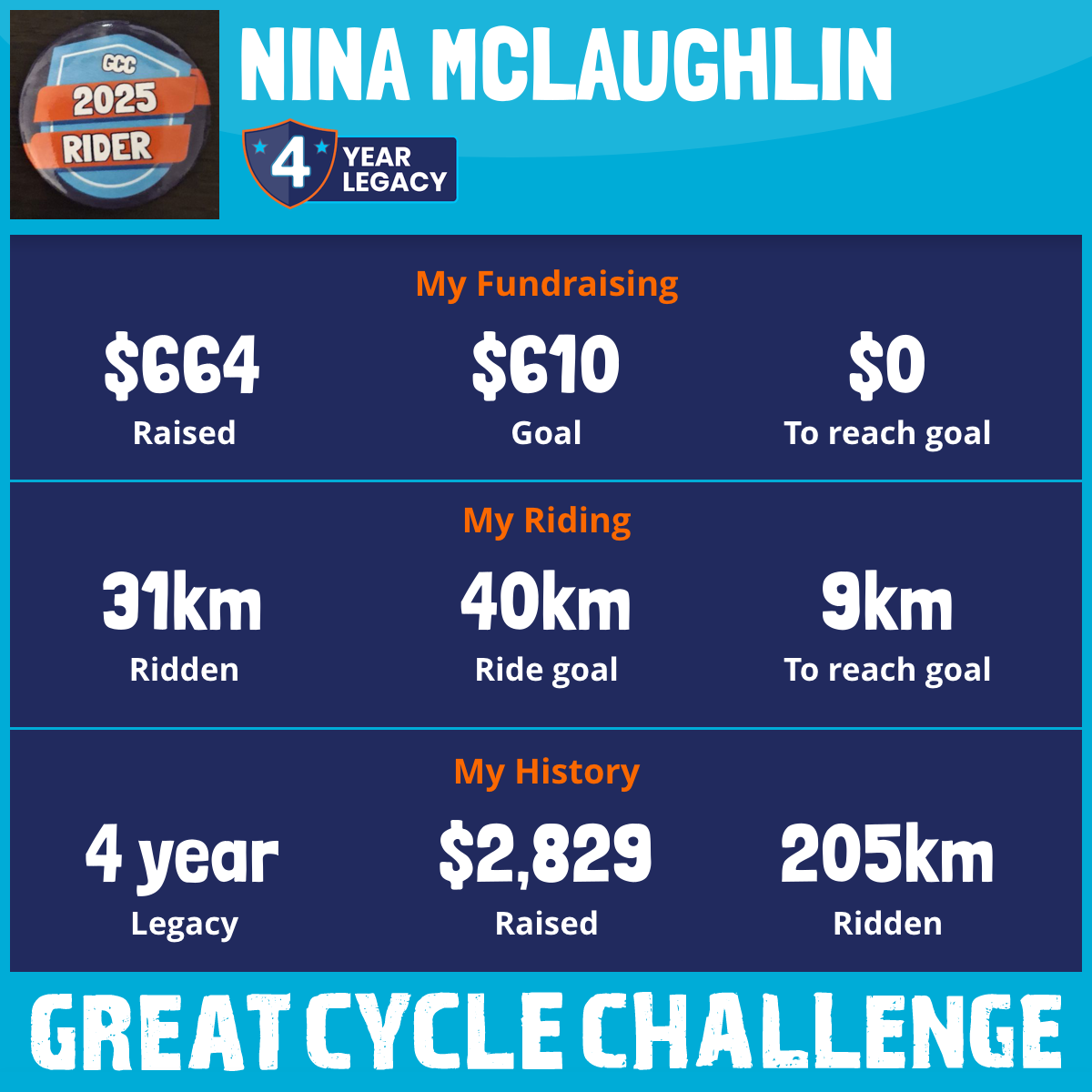 31 km Ridden$664 Raised2025