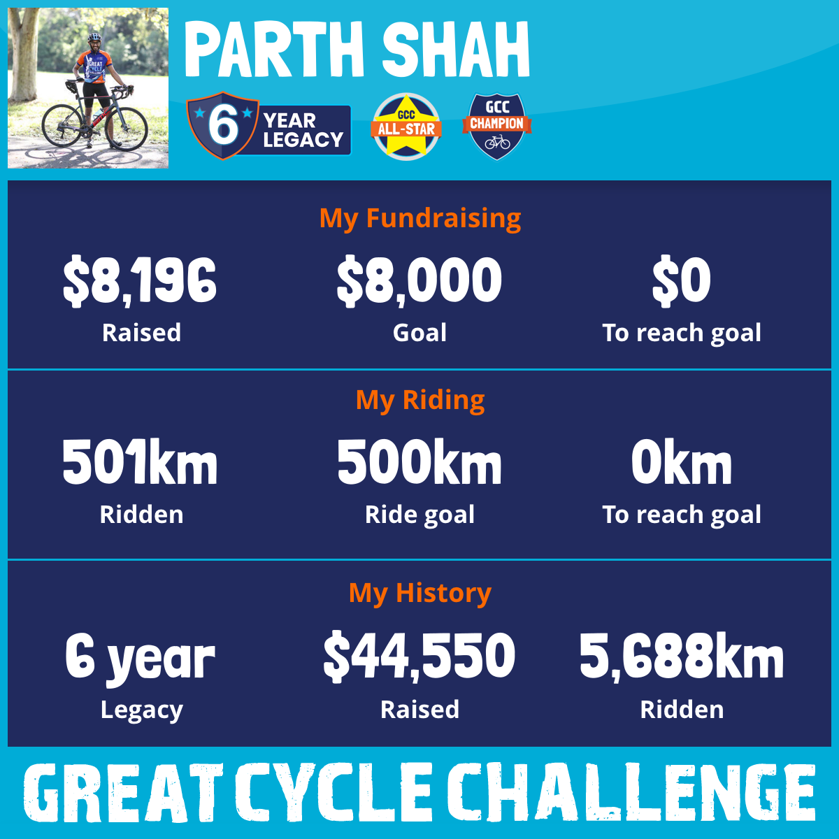 501 km Ridden$8,196 Raised2026