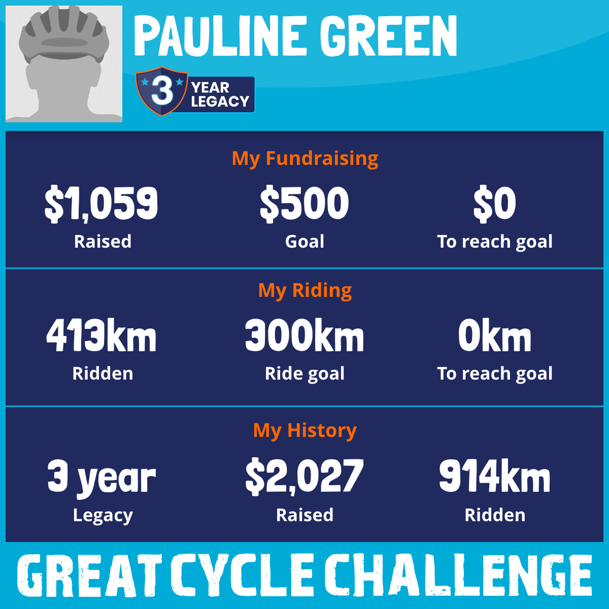 413 km Ridden$1,059 Raised2026
