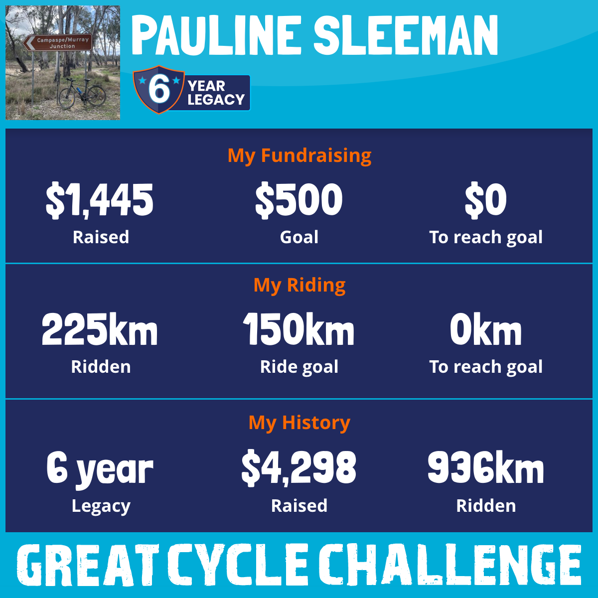 225 km Ridden$1,445 Raised2026