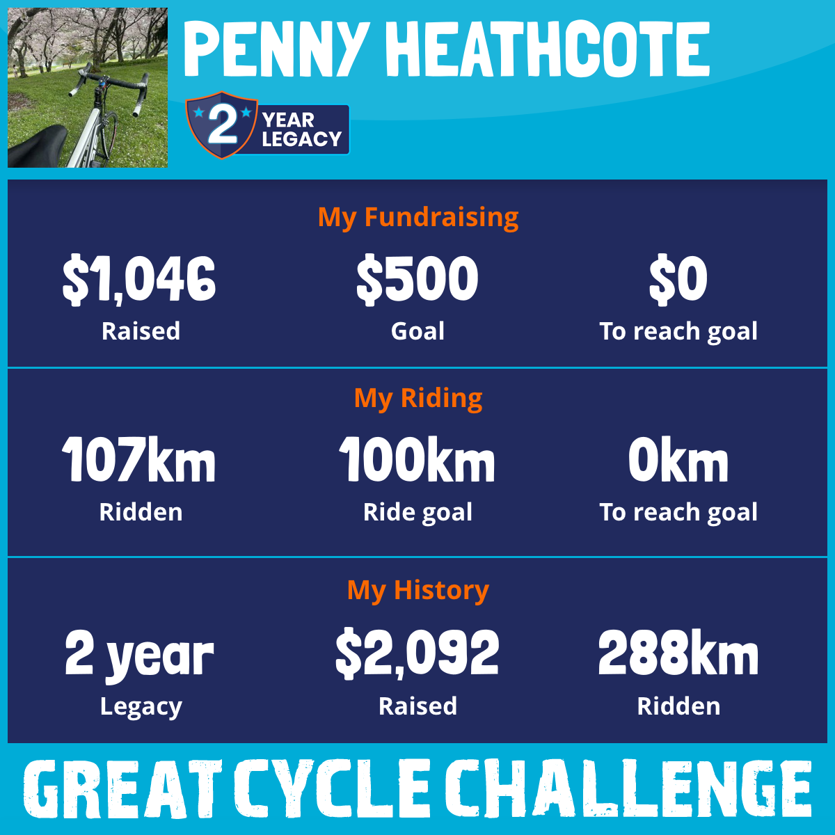 107 km Ridden$1,046 Raised2026