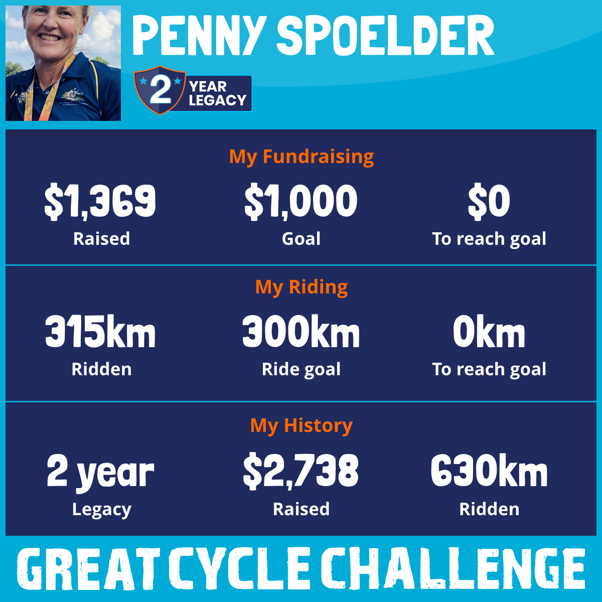315 km Ridden$1,369 Raised2026