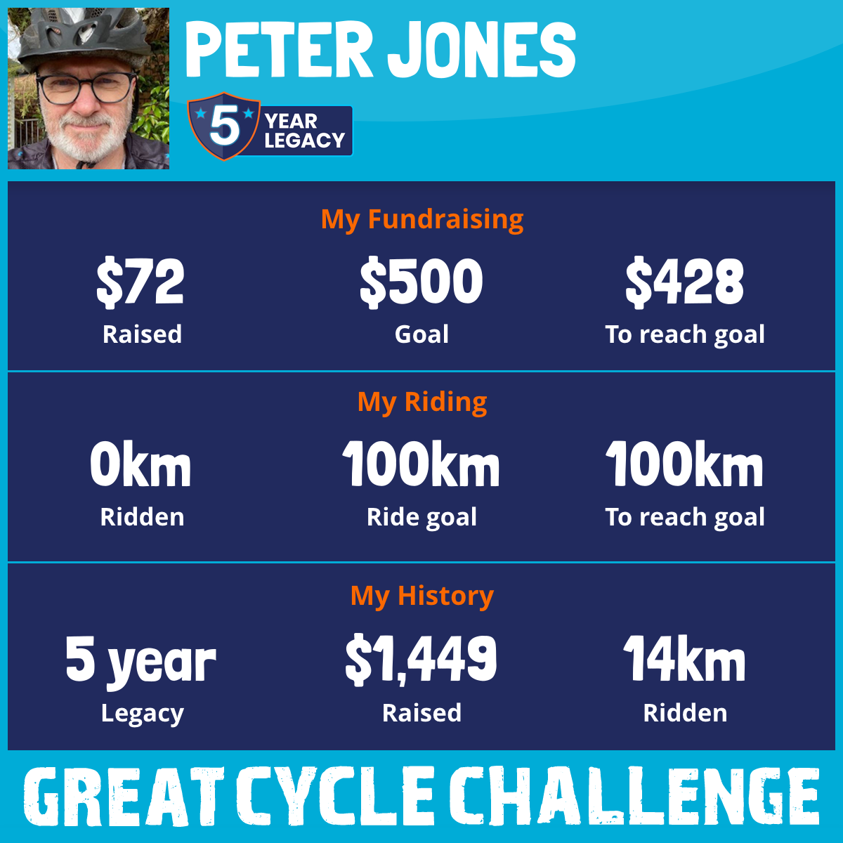 I am riding 100 km in memory of Muriel Jones my Mother. Please sponsor me and support my challenge to fight kids' cancer and save little lives.