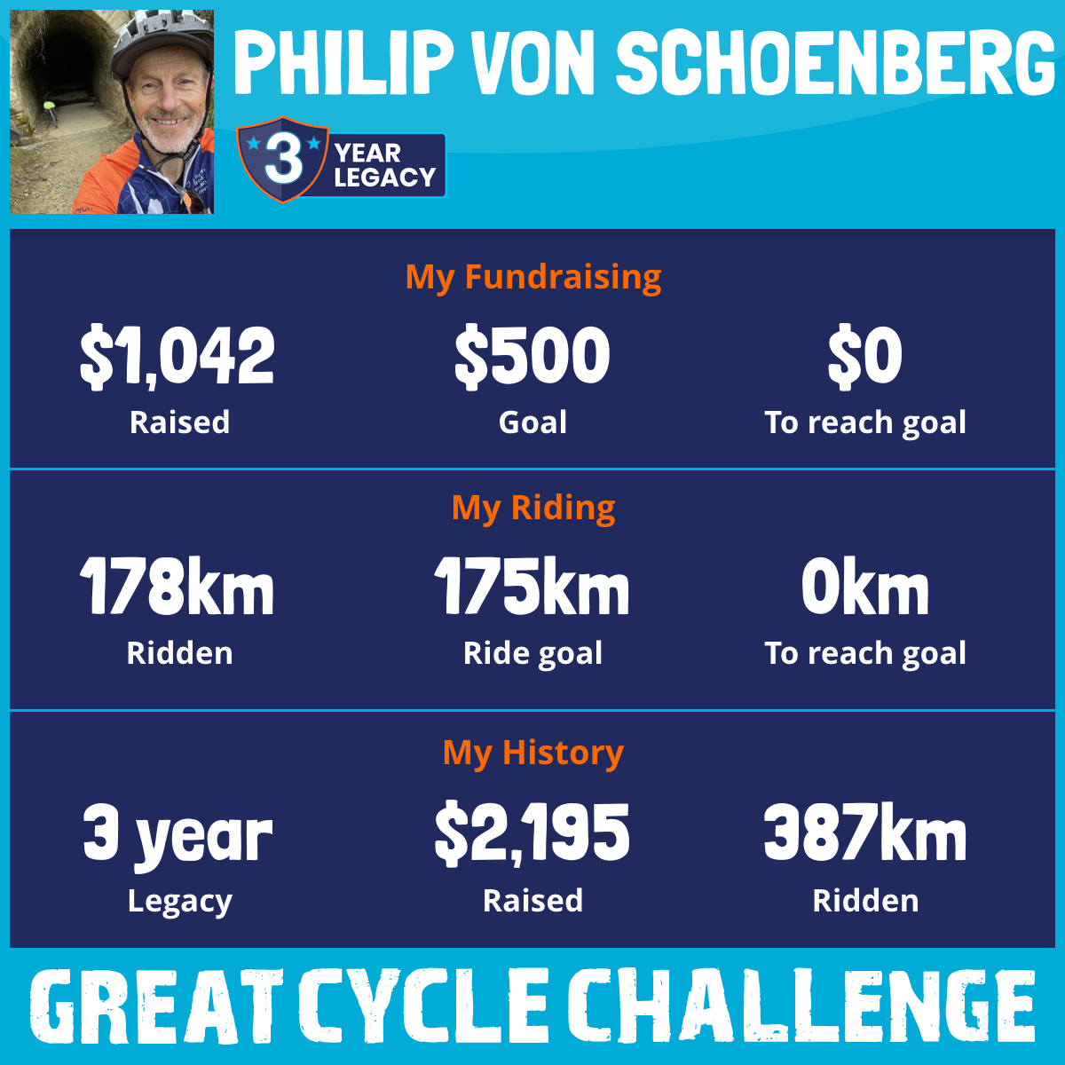 178 km Ridden$1,042 Raised2026