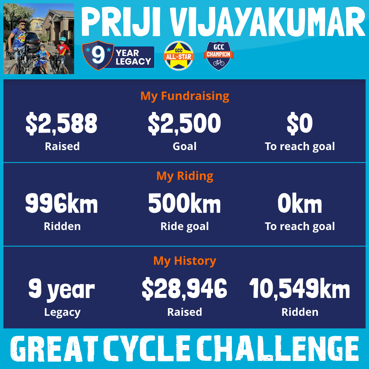 And so I am riding and raising funds to support the Children's Medical Research Institute to continue their work into the prevention, diagnosis, treatment and finding a cure for childhood cancer.