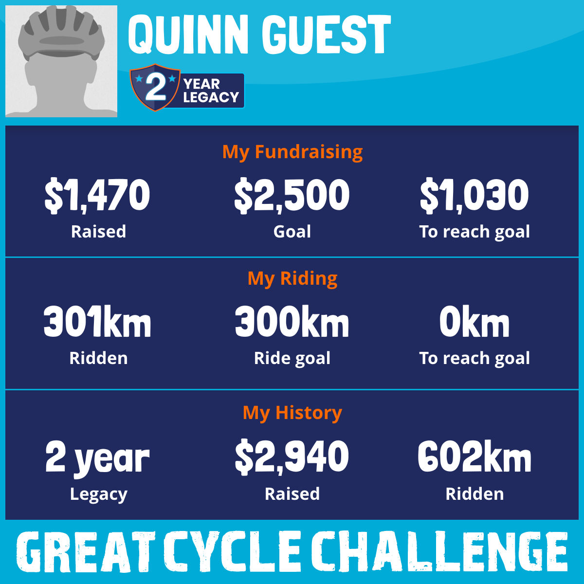 301 km Ridden$1,470 Raised2026
