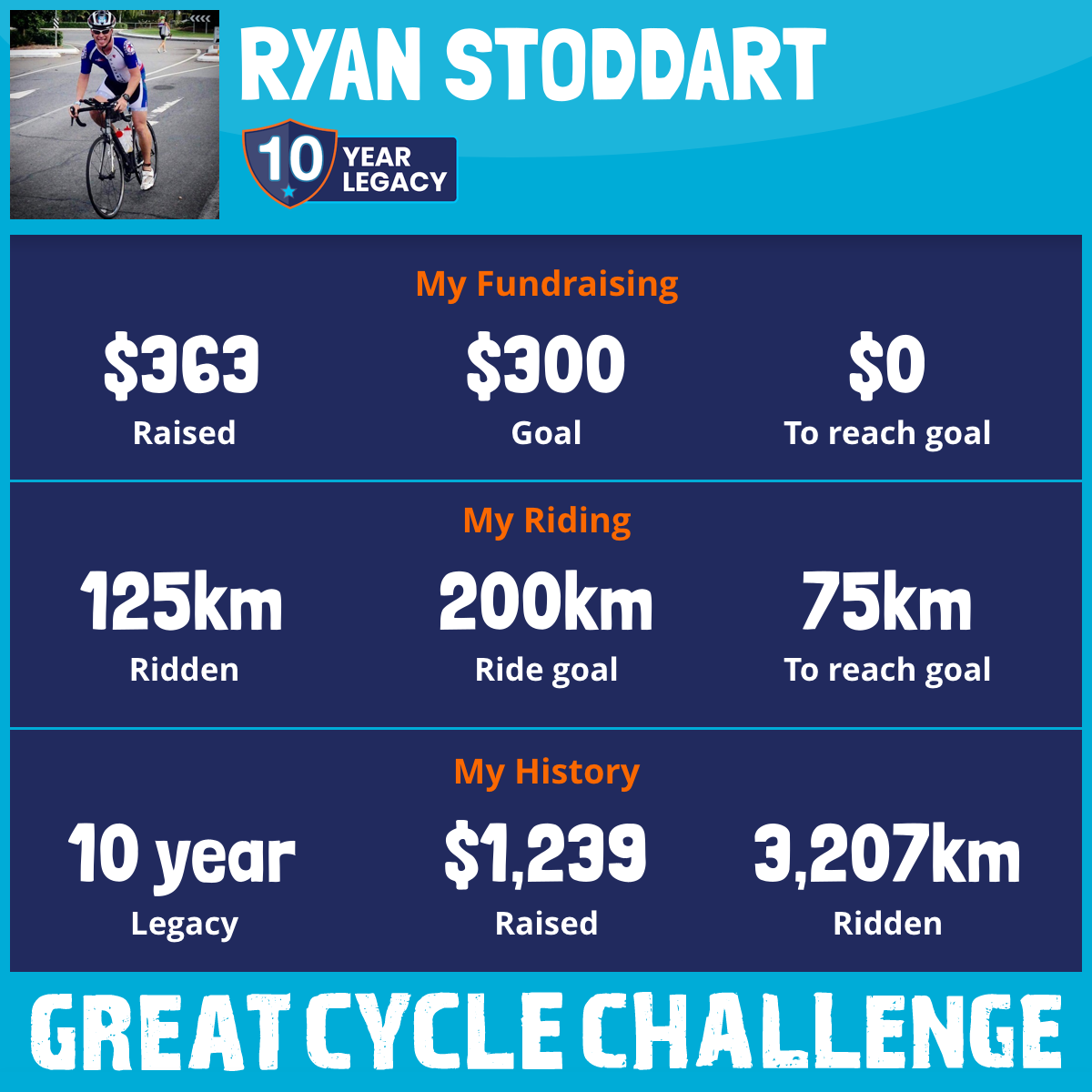 And so I am riding and raising funds to support the Children's Medical Research Institute to continue their work into the prevention, diagnosis, treatment and finding a cure for childhood cancer.